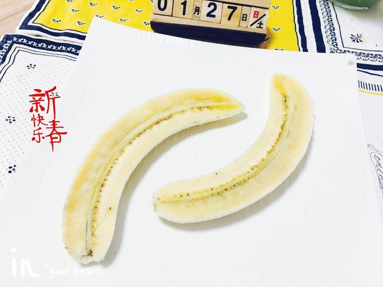 1、牛油果香蕉船的做法很简单,其实就是为了增添孩子吃水果的频率,首先准备好一个香蕉,去皮,将去好皮的香蕉用到切成两半,切的时候切记不要切坏,可以从将香蕉立起来,从一面开始切,切成均匀的两半。