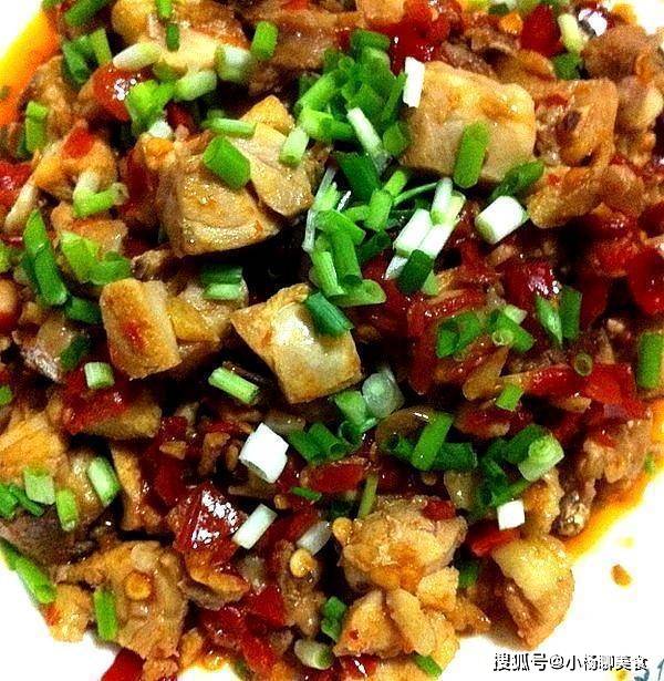 剁椒炒鸡丁 食材:鸡全腿、剁椒、姜、蒜、小葱、料酒、白糖、生抽; 做法 1.鸡全腿去骨改刀切成小丁; 2.锅里放上适量清水,加姜片,料酒烧开后,倒入鸡丁,再次煮开时捞出鸡丁过凉沥干水备用; 3.热锅上油,油热后下姜蒜末爆锅,倒入剁椒炒至出香味;