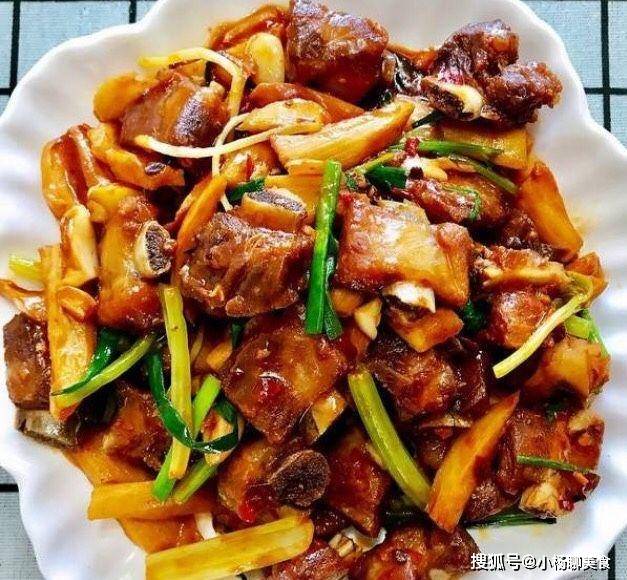 回锅排骨 食材:排骨一斤、豆瓣酱两勺、老抽一勺、莲藕1节、青红椒各两个、大蒜半个、蒜苗4根、生姜一小块、白糖适量 做法: 1、首先我们将买回来的排骨清洗干净,先搁置到一旁,把水控干。 2、将青红椒清洗干净切成小块,生姜切片,大蒜一分为二切,蒜苗切成段。 3、冷锅下入清洗好的排骨,水开后再煮15分钟,盛出控干水分。 4、起锅热油,油温七分热倒入排骨,炸至表面金黄再捞出。 5、再起油锅,油温七分热倒入姜片、蒜片再加两勺豆瓣酱进去翻炒半分钟。 6、到入排骨和青红椒进行翻炒,青红椒微见脱皮,倒入老抽和白糖搅拌均匀调味。 7、适当的可以稍微加一点水炒制