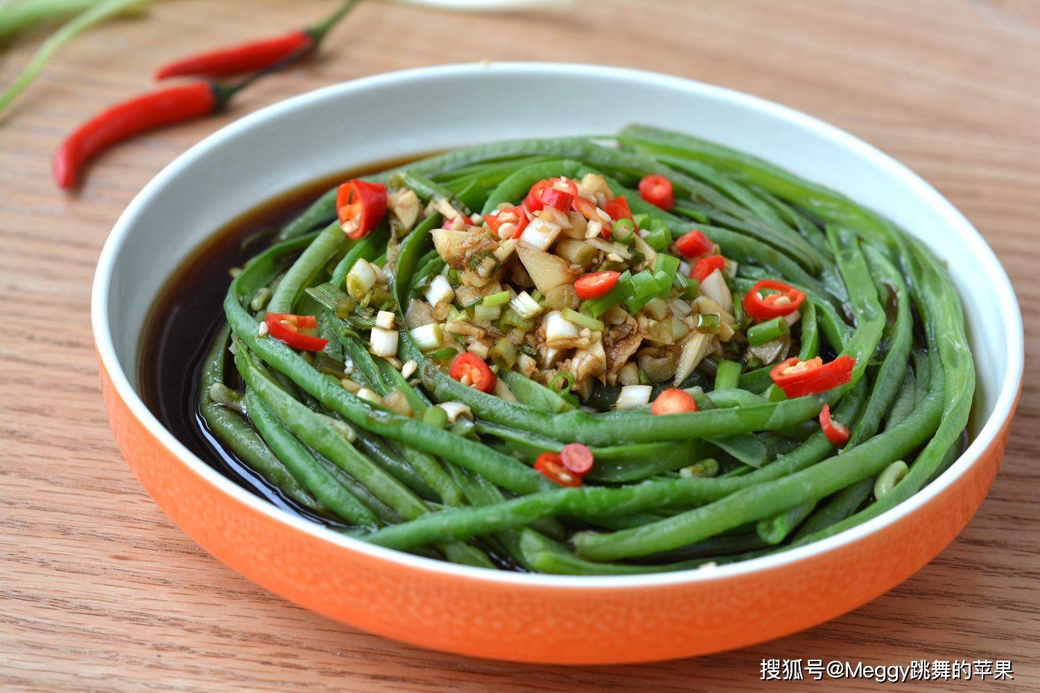 今天的这道凉拌豇豆,打破常规的切段凉拌。将焯水后的豇豆顺着筋络一分两半,再盘成圈,从颜值上比切段的更夺眼球,吃起来也是挺有乐趣的。