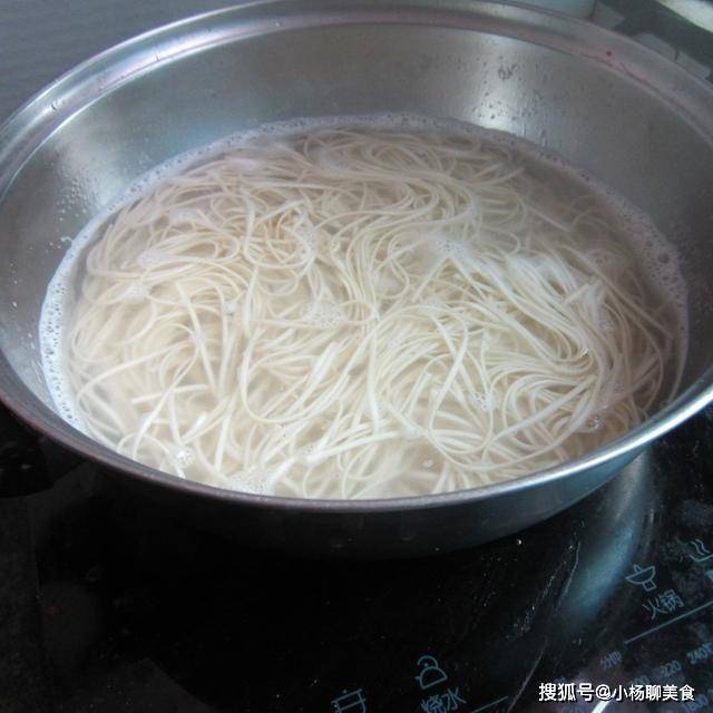 而且我们把这个面条放在锅里面煮几分钟之后捞出来,并且要把它放在晾凉的白开水里面,过一下凉水,这样的话其实是为了让这个面条吃起来更加的筋道,而且不会粘连在一起。