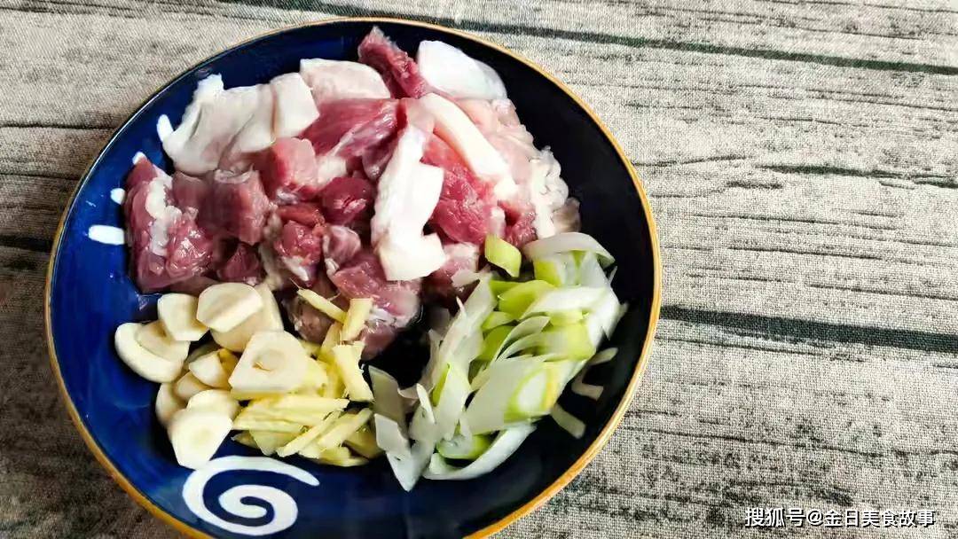 4.准备头:大蒜三瓣使用它,小洋葱也被切断。将幸免5美分的猪肚。