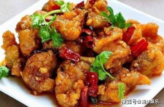 8、倒进炸好的鸡块,快速翻炒均匀即可。