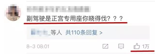对小花表示不满:“人家老婆在,你主动坐副驾驶是挑衅?!” 对男人表示不满:“你让老婆坐后排,让别的女人坐在离你最近的地方?” 评论一边倒的替老婆鸣不平,说她没有当场翻脸,已经很给男人面子了: