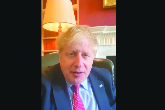 英首相强生日前确诊感染新冠病毒。(美联社)