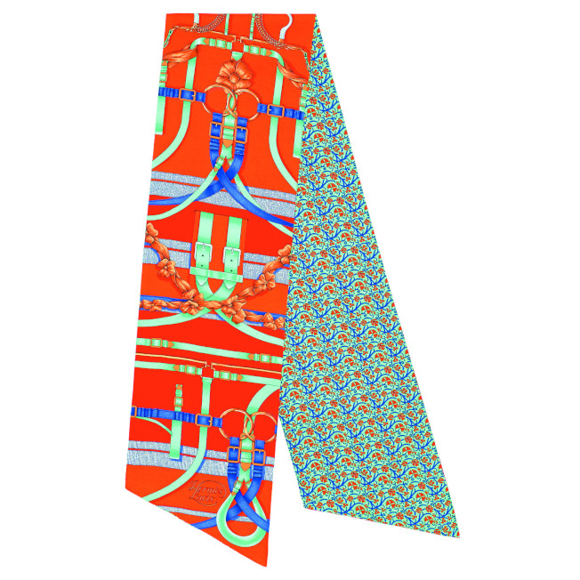 Grand Manege fleuri圖紋印花Maxi-Twilly,斜紋真絲材質。(圖:Hermes提供)