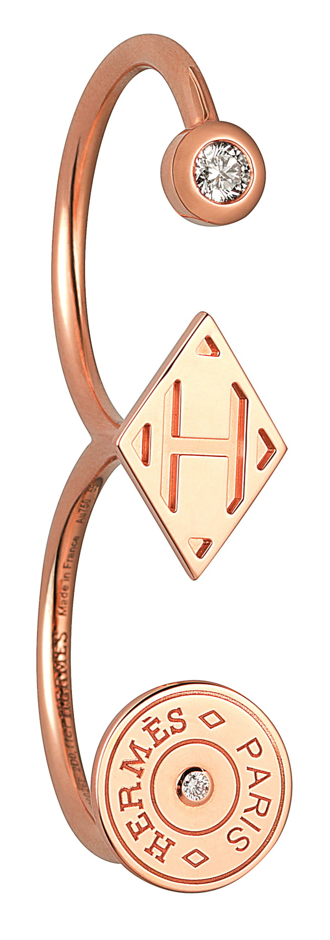 Gambade系列玫瑰金鑲鑽雙圈戒指,選用專有技術的Chaine Jaseron細鍊條,搭配鑽石、馬鞍釘、H Diamant以及 Maillons d’Arpenteur 等元素。(圖:Hermes提供)