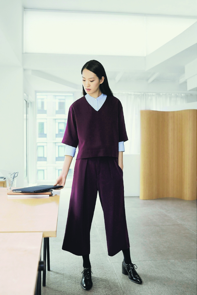 女装超柔棉宽版立领衬衫(长袖)、女装Smart九分裤。