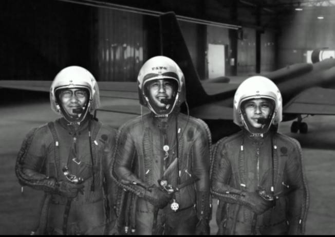 中华民国空军第35中队“黑猫中队”的设计照片,左起为第一代U-2飞行员华锡钧、第二任中队长杨世驹,与第三任中队长王太佑。(宽和影像提供)