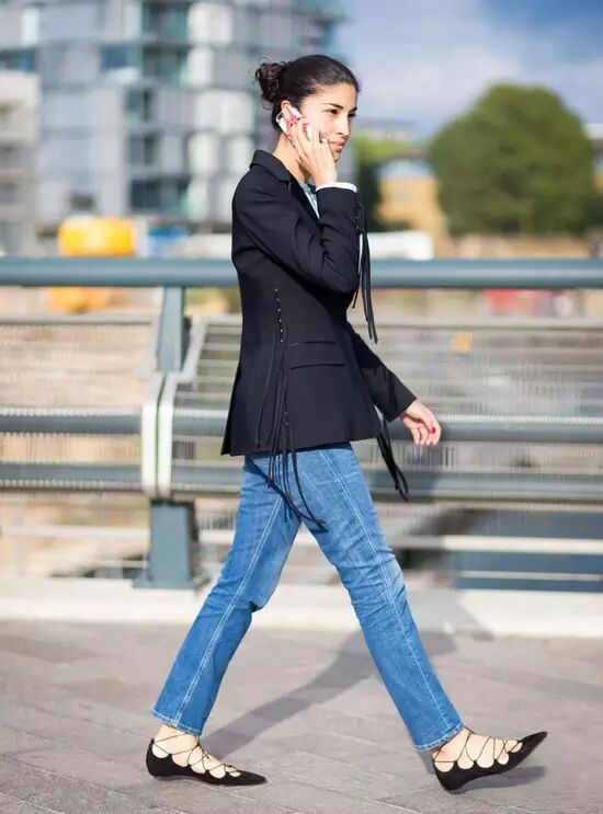 芭蕾绑带平底鞋:前卫的尖头设计加上经典的芭蕾绑带的细节,独具特色,穿上后,还会将双脚修饰的更加修长,无论搭配裙装还是休闲的裤装,看起来都是那么优雅迷人,适合脚比较瘦的哦。