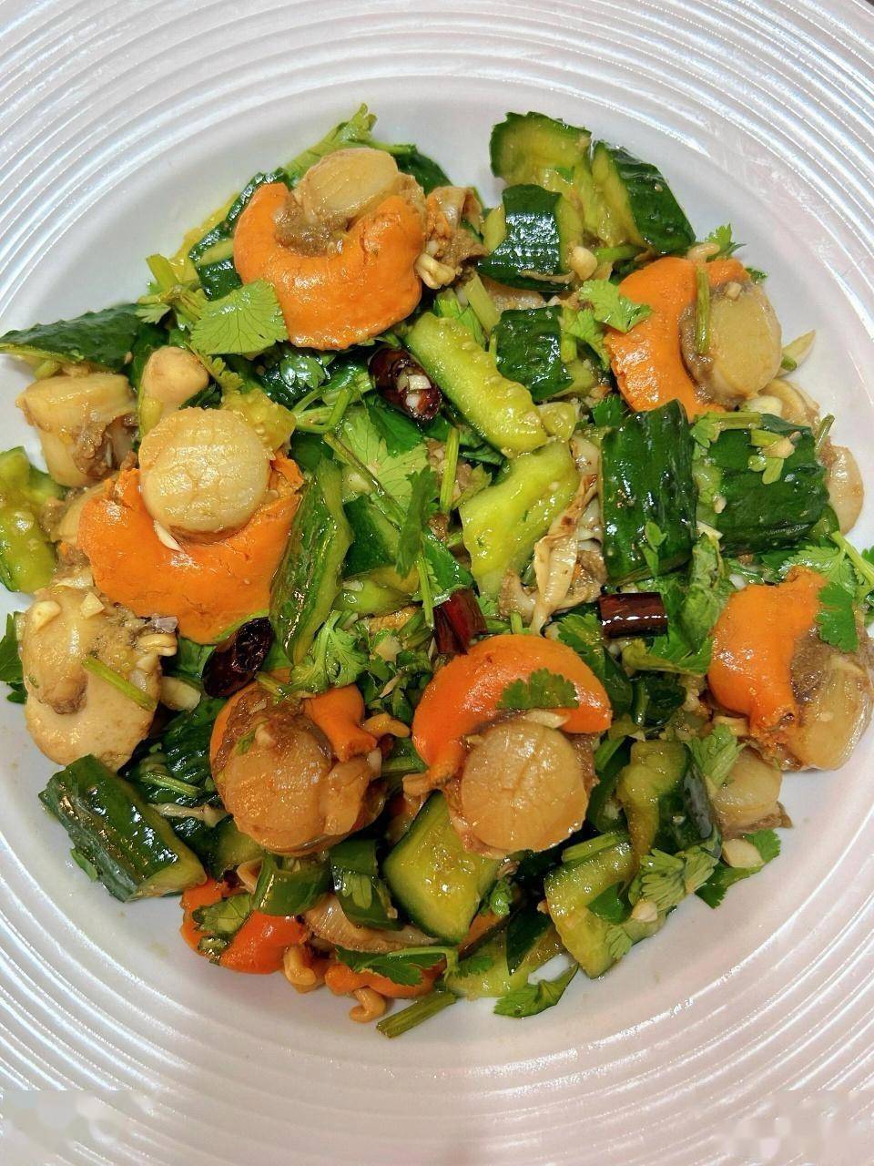1、准备二斤扇贝肉,处理干净后用清水多清洗几遍,再沥干水分。锅中烧水,水开加入1勺料酒,放入扇贝肉,焯水2分钟,然后捞出过凉水。