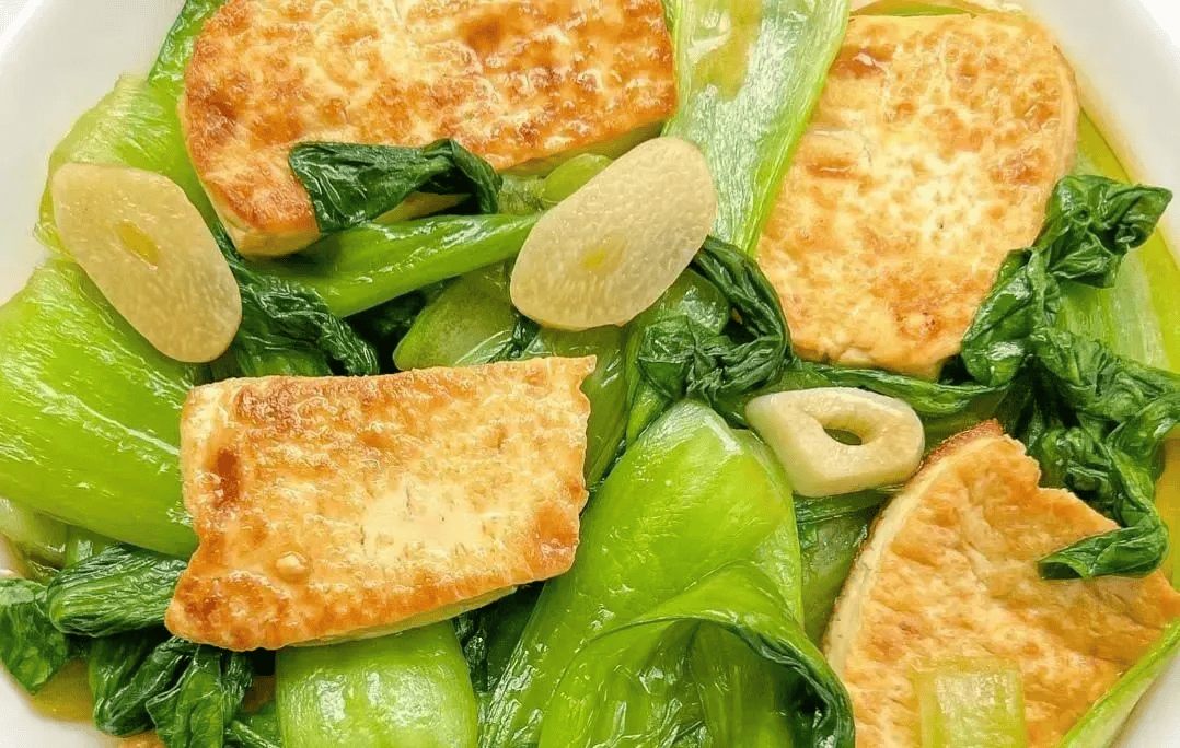 准备食材:豆腐,油菜,蒜片。 做法步骤: 1、油菜掰开,清洗干净。豆腐切成厚一点的片,蒜切成蒜片。 2、起锅烧油,油热后放入豆腐煎一下,煎至两面焦黄就可以盛出备用。 3、锅中底油,放入蒜片爆香,再放入油菜翻炒一会儿,炒软后放入豆腐。加入蚝油和生抽调味,继续翻炒均匀入味即可出锅装盘开吃。