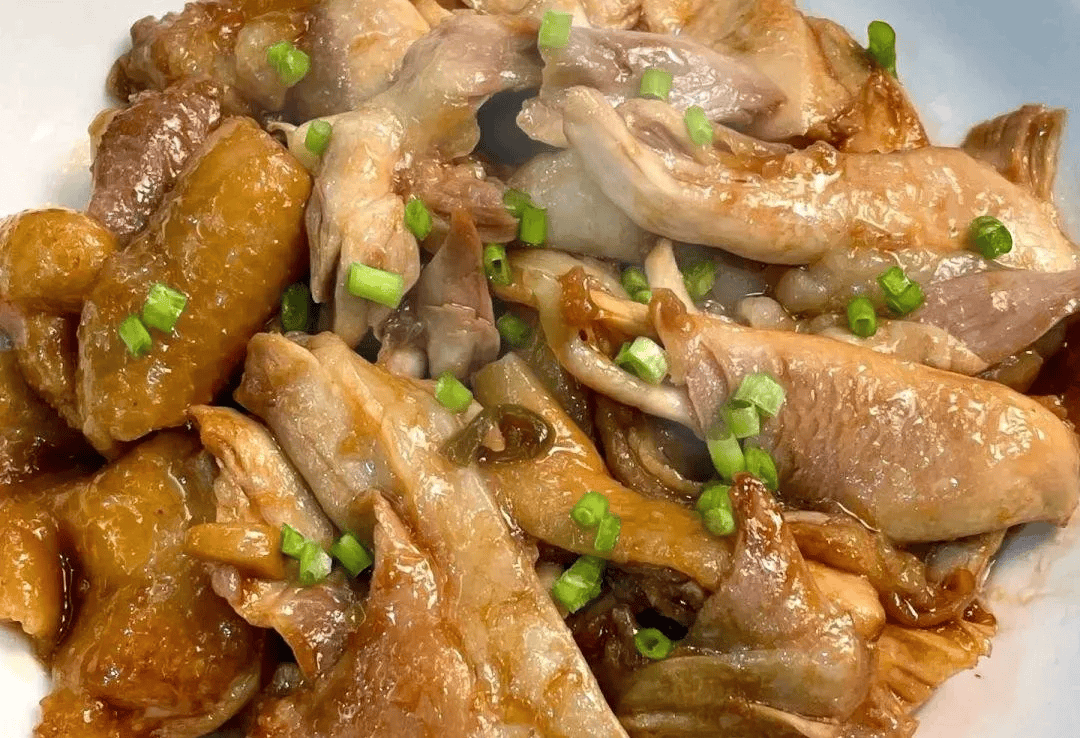 食材准备:半只鸡、沙姜、姜片、蒜瓣、洋葱,葱花。 做法流程: 1.调制酱汁,取碗加入三勺生抽、一勺老抽、两勺蚝油、一勺白糖、一丢丢食盐和大半碗清水,搅拌均匀即可。 2.清洗干净半只鸡,准备好所有的配菜,然后起锅烧油,油热以后,放入鸡肉油煎,煎至两面金黄后,盛出备用。 3.锅中留底油,放入沙姜片、老姜片、蒜瓣和小葱爆香,然后倒入洋葱一起翻炒均匀,炒出香味,再放入煎好的鸡肉,淋入调好的酱汁。 4.大火煮开,然后焖煮30分钟,中间翻面一次,焖煮时间到后,不断把汤汁淋在鸡肉上,淋至汤汁浓稠,即可出锅。 5.再把鸡肉撕成小块,放入碗中,再淋入剩余汤汁,撒入一把葱花点缀,即可出锅开吃。