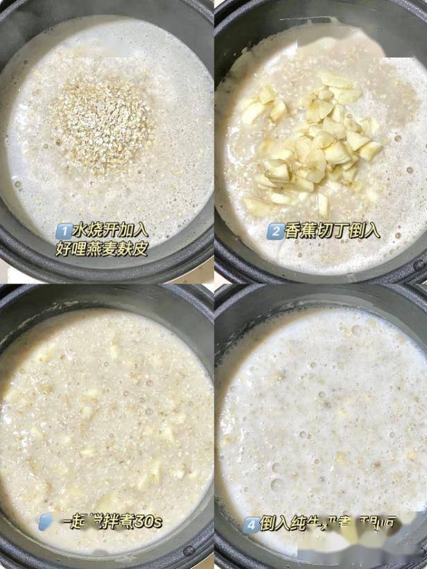材料:适量水,一根香蕉,适量燕麦片,适量牛奶。