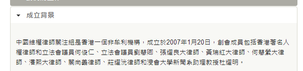 进一步检索发现,这个号称为人 权 律师关注组的组织,与法轮工、藏独、热比亚等疆  独乃至台独分子关系密切,多次在针对大陆热点案事件歪曲炒作,叫嚣香港和台湾独|立。他们制定三位一体战略,一些网站刻意打造权威形象,发布所谓权威消息;另一些法轮工的网站则以人吃人、“活摘|器官”等为噱头抹黑;接下来动用狗肉超(反华人士温云超,因多次鼓励他人吃狗肉而得名)等一批喽啰利用社交网络摇旗呐喊,擂鼓助威。