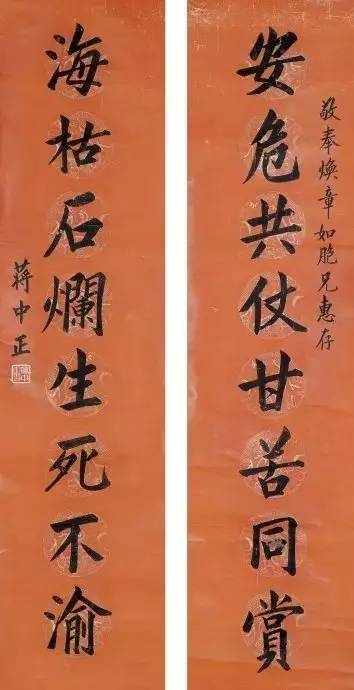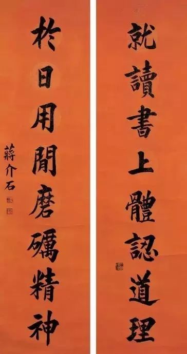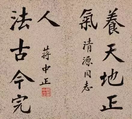蒋介石的书法,既如其人,又如其名,中中正正,形如一介方正耿直的石头。从他的发展轨迹来看,蒋介石从小就遭到了优胜的传统正轨教育因此不难揣测他的书法必以工整端严见长。