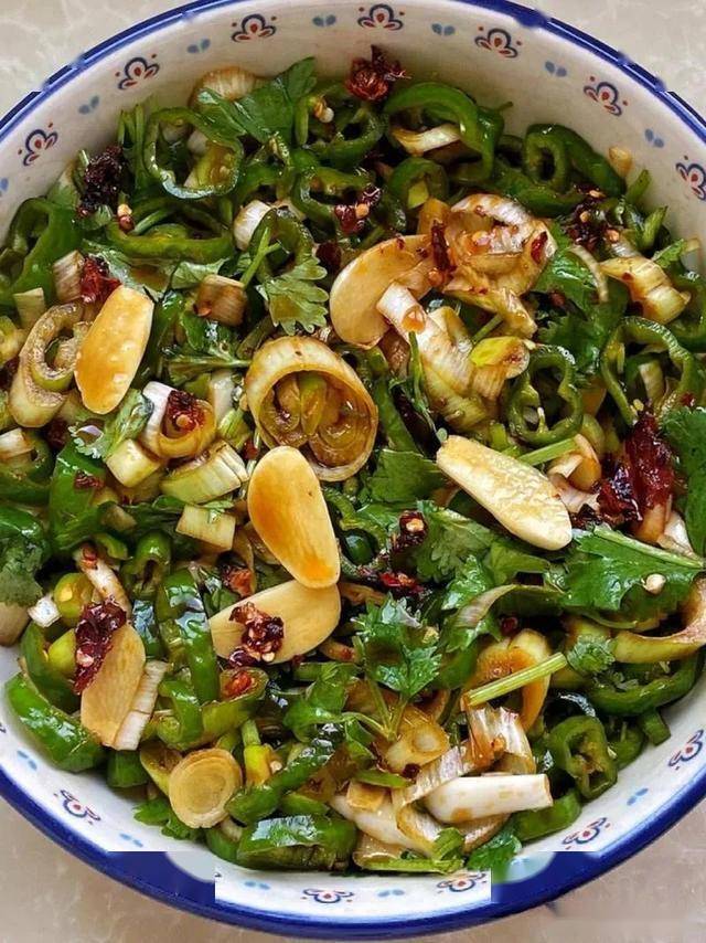 所需材料:青椒 2-3个;大葱 2根;蒜瓣 2瓣;食用油 适量;盐 适量;酱油 1小勺;白糖适量;红辣椒(可选)1个;醋 1小勺;香菜(可选)适量 步骤: 1. 准备食材:青椒洗净,去籽,切成细丝。大葱洗净,切成细长段。如果不喜欢葱的辛辣味,可以将葱丝泡水稍微去腥。蒜瓣切末,红辣椒切成小段(根据个人口味调整辣度)。 2. 焯青椒:锅中加入适量的水,烧开后放入切好的青椒丝,快速焯水约1分钟。青椒焯水后,立即捞出放入冷水中浸泡,保持其脆感和颜色。焯水有助于去除青椒的生涩味。 3. 炸蒜末和辣椒:锅中加入少量油,放入蒜末和红辣椒段,小火炒香。注意不要炒焦,炒至香味四溢即可。 4. 调味汁:在一个小碗中,加入1小勺酱油、1小勺醋、适量白糖、少许盐,搅拌均匀,调成酸甜口味的调味汁。根据个人口味适量调整。 5. 拌葱丝:将切好的大葱段放入大碗中。如果喜欢葱的脆口感,可以稍微用盐腌制一会儿,这样葱味会更加柔和。 6. 混合青椒和葱丝:将焯过水的青椒丝和准备好的大葱段放入大碗中,加入炒香的蒜末和辣椒。 7. 拌匀调味:最后将调味汁倒入大碗中,快速搅拌均匀,让青椒、葱丝、蒜末和辣椒完全融合,入味即可。 8. 装盘:将拌好的青椒大葱装入盘中,撒上少许香菜叶作为装饰(可选),即可食用。