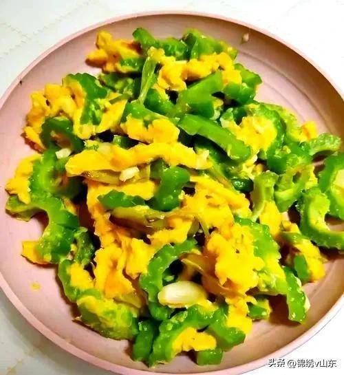 准备食材:苦瓜,鸡蛋,蒜末。 做法步骤: 1、苦瓜表皮撒上食盐搓洗,洗净后切开,挖掉里边的瓜瓤,再切成薄片,加入食盐和白糖抓匀腌制十分钟,挤干水分备用。鸡蛋打入碗中,搅散备用。 2、起锅烧油,油热后倒入鸡蛋液煎一下,煎至定型后,炒散盛出备用。 3、再次起锅烧油,油热后放入蒜末炒出香味,再放入苦瓜翻炒一会儿,炒至断生后加入生抽调味,翻炒几下翻炒均匀。 4、然后倒入鸡蛋,加入食盐和白糖,翻炒均匀煮至入味,即可出锅装盘开吃。