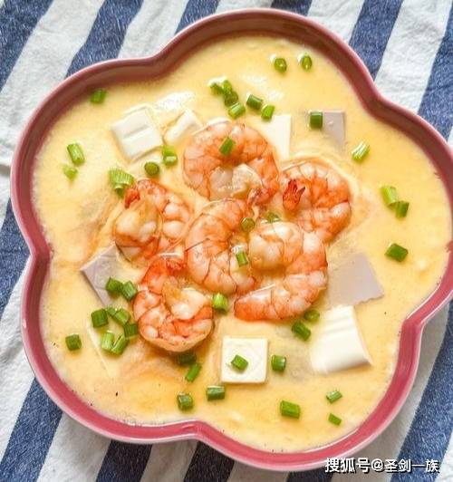 食材: 豆腐、鸡蛋、大虾、西兰花、黑胡椒碎。 做法步骤: 1、西兰花切小朵,接着把大虾去除虾线和外壳,然后起锅烧水,水烧开之后,分别放入西兰花和虾仁焯水,然后捞出沥干水分备用。 2、豆腐切成薄片,然后铺在蒸碗底,接着鸡蛋和温水按照1比1的比例搅拌均匀,再过筛去除浮沫淋在豆腐上。 3、接着把虾仁和西兰花铺在最上面,然后上蒸锅蒸煮十五。 4、最后淋入生抽和香油,再撒入一把黑胡椒碎点缀提鲜,即可开吃。