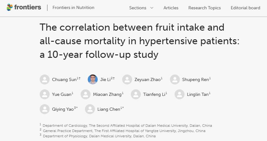 该研究对美国国家健康、营养检查调查数据库内2480名高血压患者进行了10年的随访,调查受试者的水果摄入频率,分别将他们分成每月<1次、每月1~2次、每周3~6次、每天≥1次。