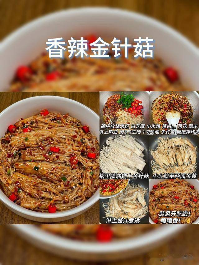 材料:一把金针菇,烧烤粉,白芝麻,小米辣,辣椒面,葱花,大蒜末,热油,3勺生抽,1勺蚝油,少许盐,适量白糖,