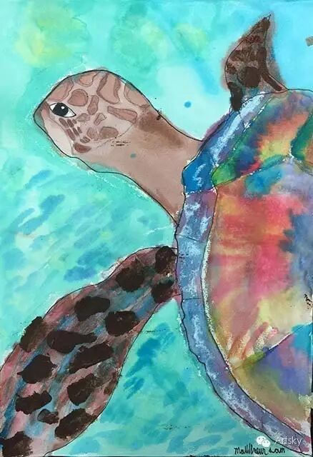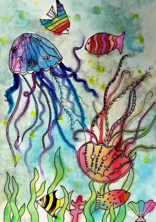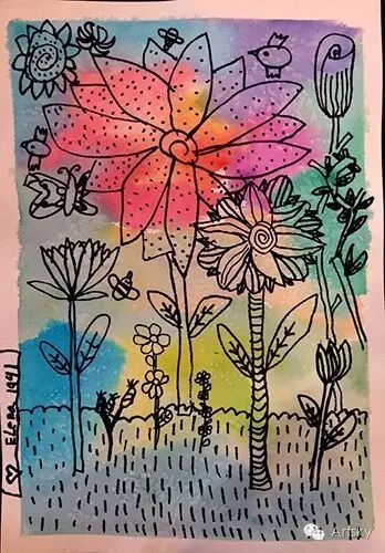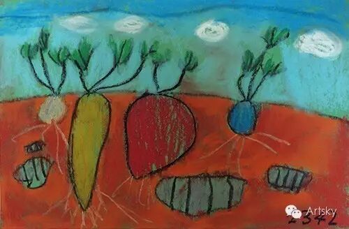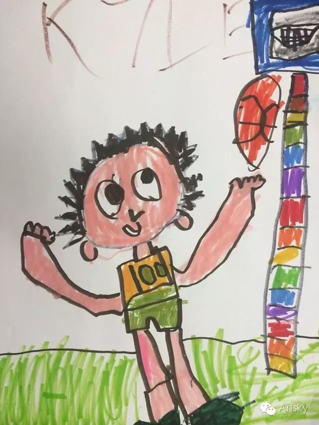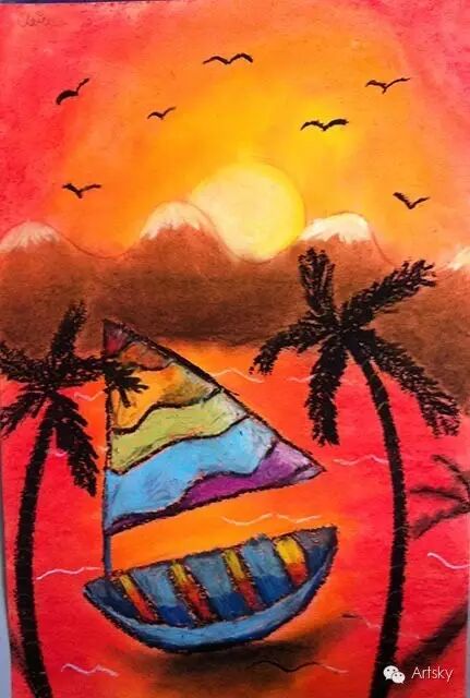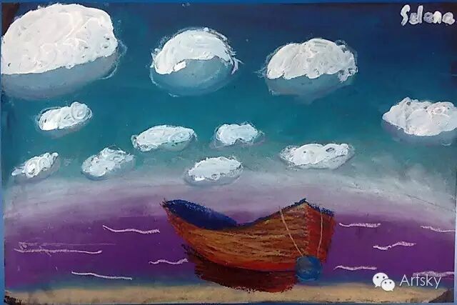 我有个学生叫Patrick,他喜欢把树干画成紫色,把树叶画成柠檬绿,这是一种反常规的用色方法,也反映了他天生的良好的色彩感觉。如果家长看到孩子的画中出现这种反常规的涂色情况,摆脱您千万不要去“指导”。在教学中,我鼓励儿童打破常规,用另一种思维去思考,去表现。在自然界中,太阳是红的,海水是蓝的,但是在绘画中,It can be any color. 我曾经用音乐加图片的方式鼓励儿童去表现太阳,几乎每个人都不再用黄色来表现太阳,他们画的太阳有的是白色的(夏天的正午的太阳),有的是黑的(漫长的冬天的太阳),还有的是玫瑰色的(批了晚霞的太阳)。这就是色彩的感觉,是附加了感受的对色彩的理解。