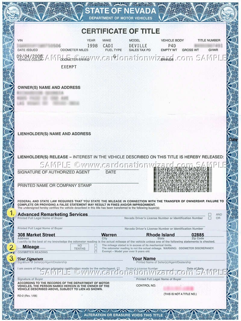 1. 卖家签好名字并且资讯填写完整的车辆title;