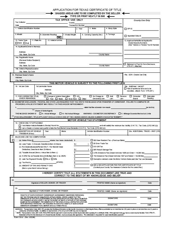 德州规定车辆交易完成30天内需办理车辆过户手续。过户时需要携带: