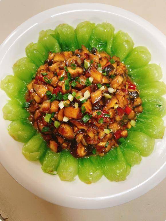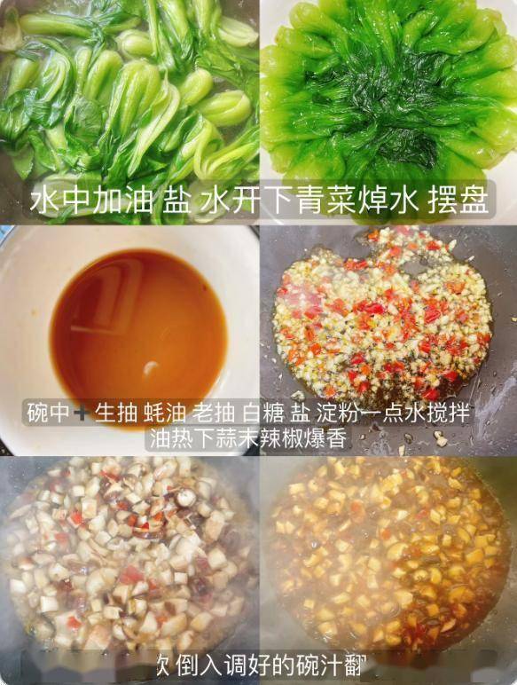 材料:一把油菜,生抽,蚝油,白糖,盐,淀粉,辣椒,大蒜末,适量香菇,