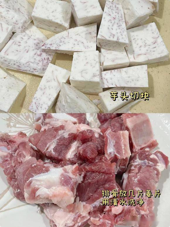 材料:适量芋头,适量排骨,热油,盐,2勺生抽,1勺蚝油,1勺淀粉,葱花。
