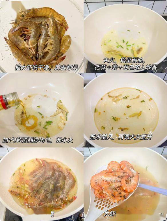 材料:适量大虾,大蒜,生姜,葱白,1勺料酒,蒸鱼豉油。