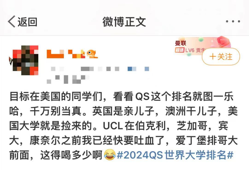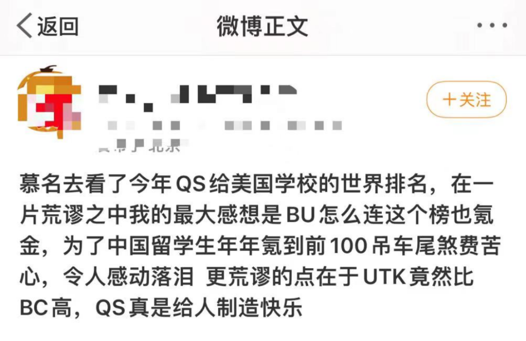美国留学生群体对于排名的质疑和调侃,体现在双重层面。