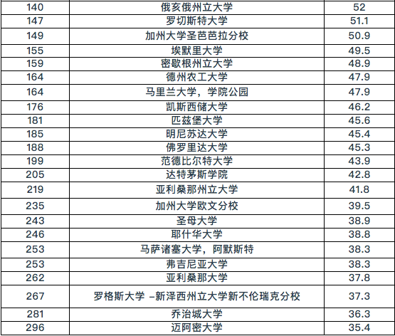 我们先来看看美国QS大学前300强的排名是怎样的: