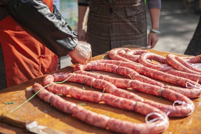 盐和猪肉的比例是制作香肠时的关键因素之一。盐不仅能够增加香肠的咸味,还具有防腐作用,能延长香肠的保质期。但盐的用量必须恰到好处,过多则咸,过少则容易变质。