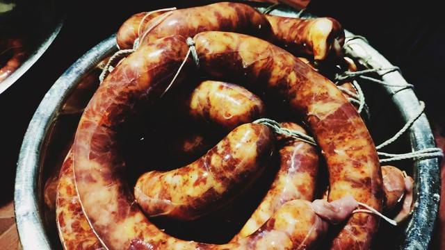 • 晾晒:将灌好的香肠挂在阴凉通风的地方,避免阳光直射和雨水淋湿。晾晒的时间根据天气和香肠的大小而定,一般需要7-15天。在晾晒过程中,香肠会逐渐失去水分,颜色变深,质地变得更加紧实。