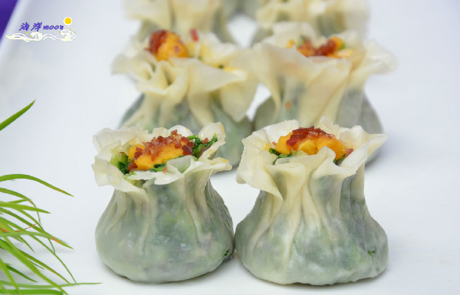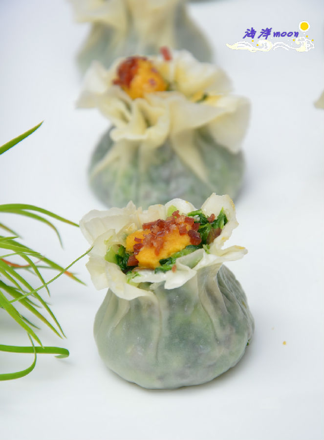 翡翠烧卖是一道扬州有名的面点。色如翡翠,口感甜中带咸。淡淡的咸味提鲜衬甜。独特的口感,迷人的色泽,让人品尝之后就会记住这道独特的点心。