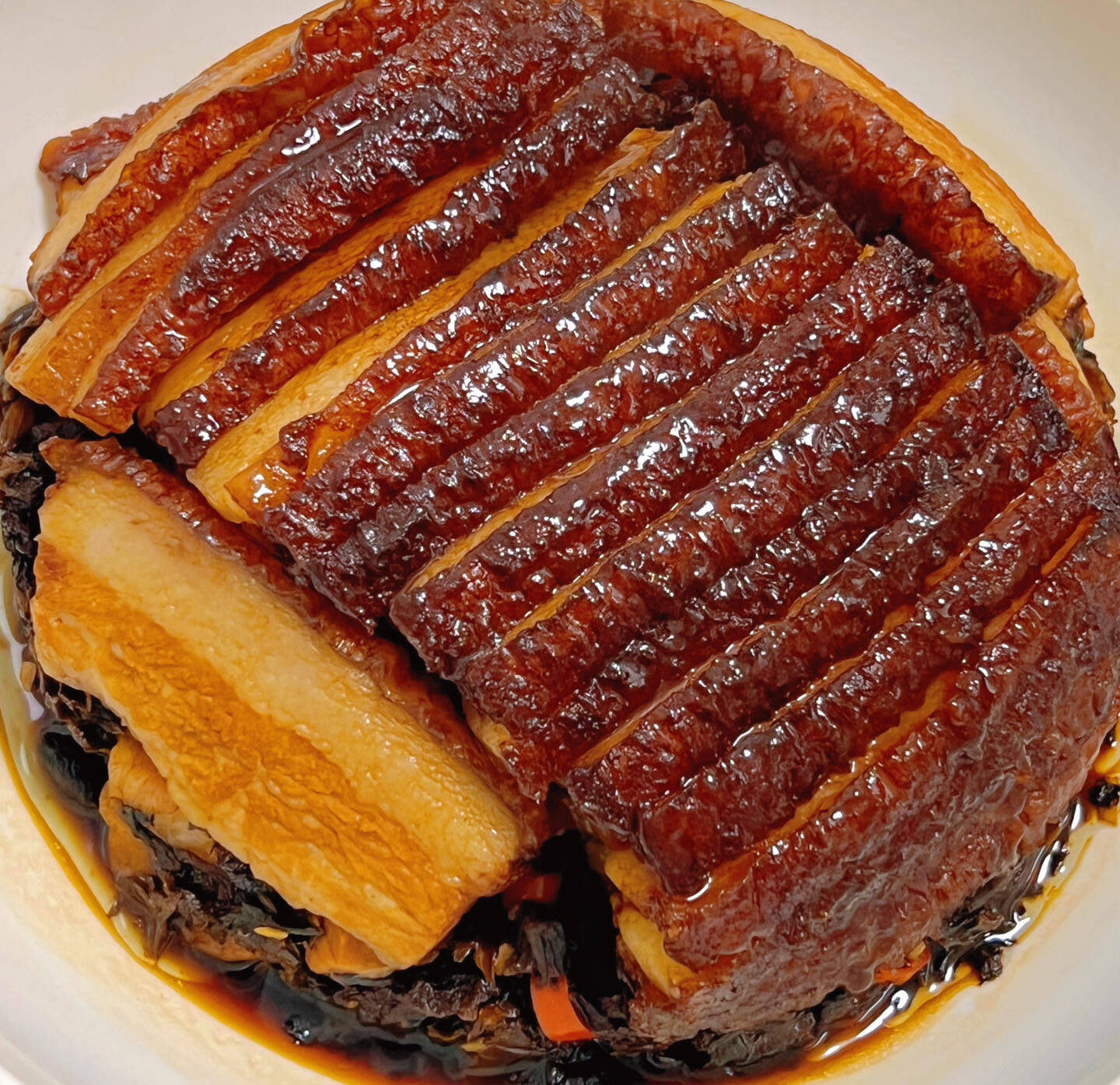 这绝对是家常菜里的大菜了,虽然做起来有点麻烦耗时,但味道真的值得。餐桌上下饭的扛把子,肥肉的油脂都蒸出来了,一点也不腻。不爱吃肥肉的我也好爱这道菜。