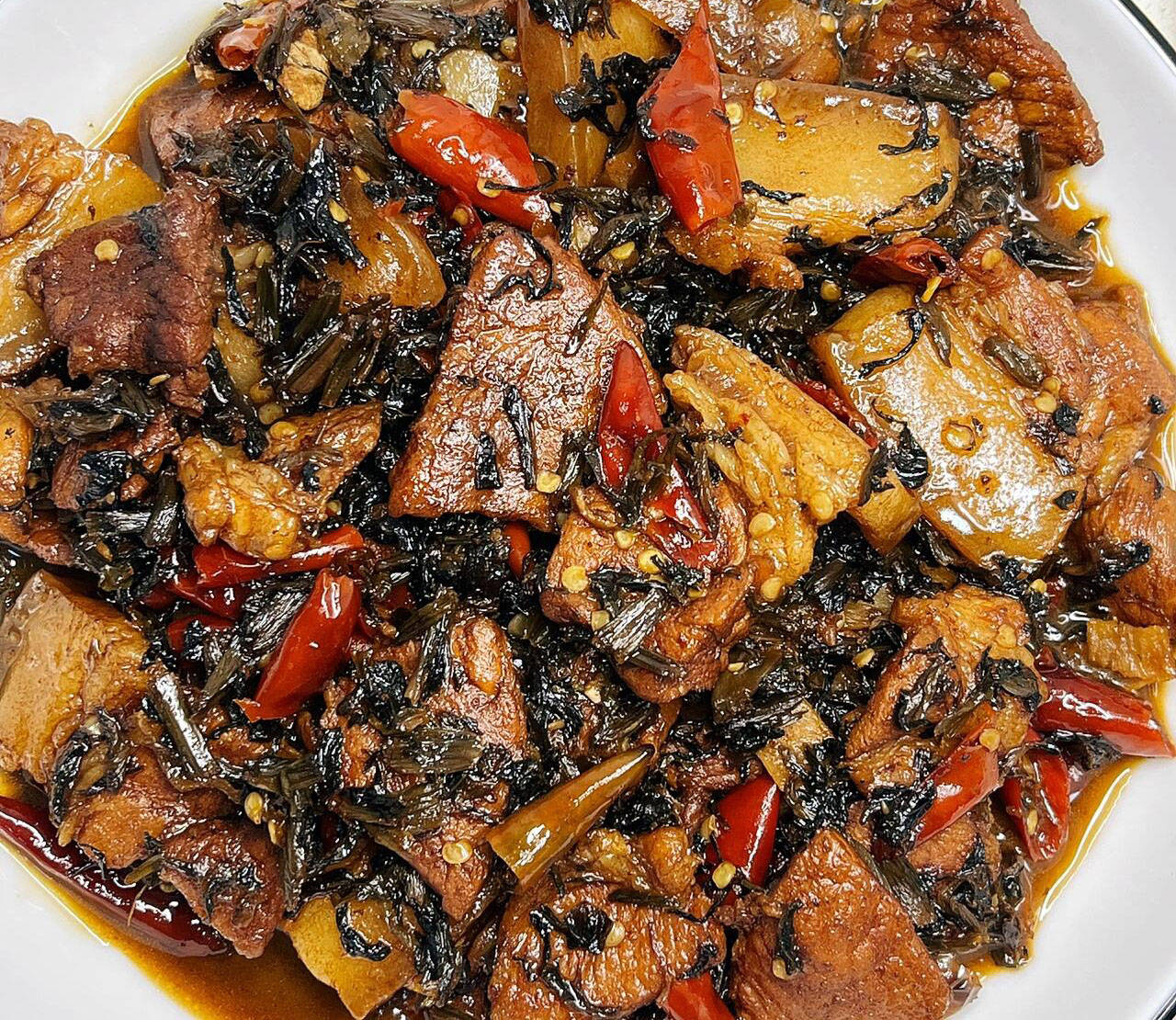 食材:梅干菜、猪肉、干辣椒、生姜、八角