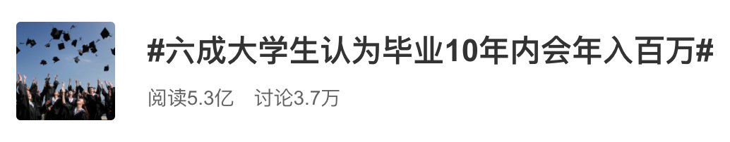 在大家纷纷准备简历、面试之时,主页君刷到了这样一个热搜:#六成大学生认为毕业10年内会年入百万#。