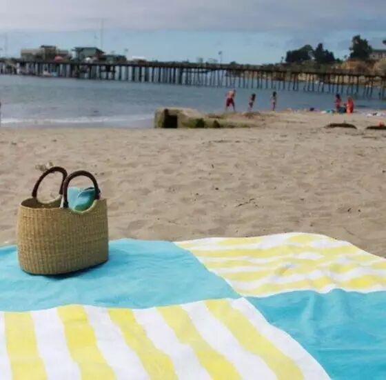 然后将窄条绕圈缝在圆布上面,柔软又吸水的浴巾就能用了~