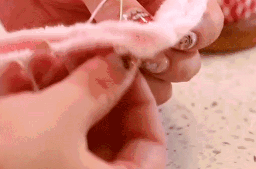 制作的时候把毛巾剪成几个窄条和圆布,先将窄布用线缝一圈,从一头将线抽紧,使毛巾出现褶皱。