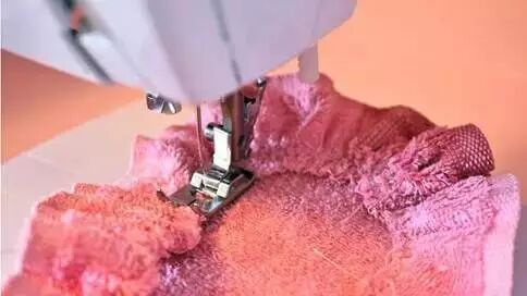 不用急,还可以用旧毛巾!觉得以前的围裙太短,还可以在围裙上缝上旧毛巾。