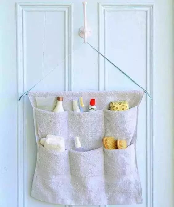 挂在门后的收纳袋,多缝几条毛巾就够了,想要放长一点的东西记得缝的深一点。