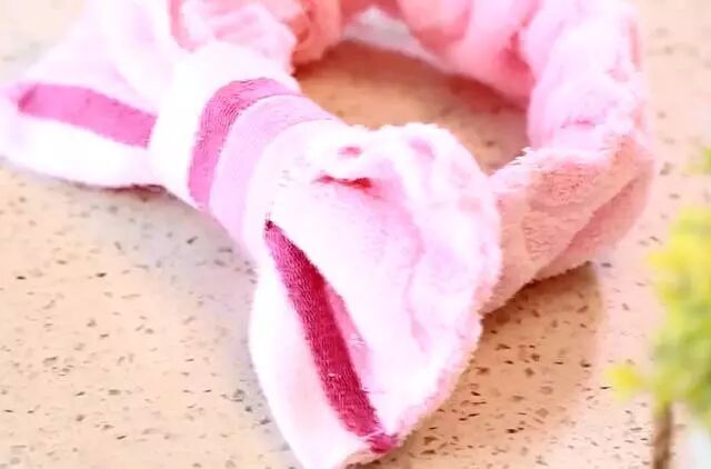 最后用剩下的毛巾折个蝴蝶结放在发带上,漂亮又实用的发带就做好了!