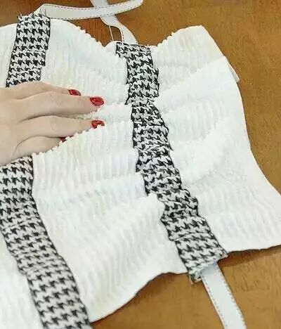 长条只在两边缝合,因为要把中间是空出来的,穿进去一条皮筋。