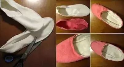 使用过的旧毛巾有一定的摩擦,用它来做拖鞋是再好不过了。
