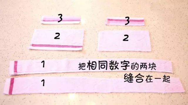 把皮筋穿过毛巾后打结塞进毛巾缝里,再用短毛巾缝合一遍。