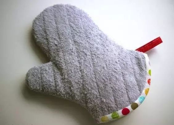 只需要将毛巾对折,剪成适合手的大小,再把边缘缝起来就完成了。