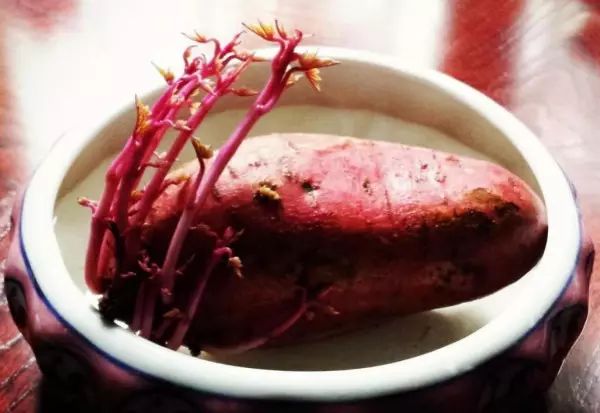 如果竖放红薯,根须朝向哪头,哪头就要放在水里。水漫不过腰身,找一透明玻璃杯或花瓶进行装置。如果横放红薯,只需找个漂亮的花盘。
