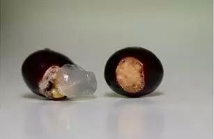 2.在水中泡了两天,龙眼核的外壳慢慢裂开,记得每天要换水。
